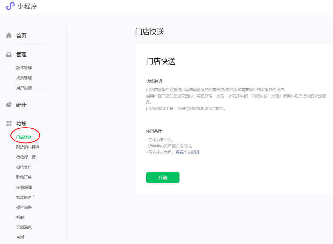 門店快送準入規則