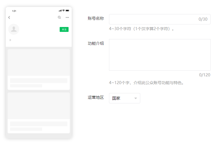 7、注冊成功后,填寫公眾號的相關信息,包括公眾號名,公眾號簡介