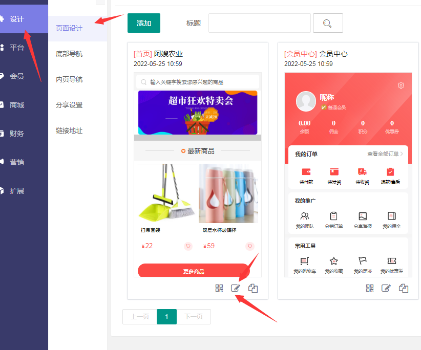 所以設計頁面,所有的內容,都可以自定義,DIY,右上角的版塊,都是支持添加在首頁,進行設計和布局的