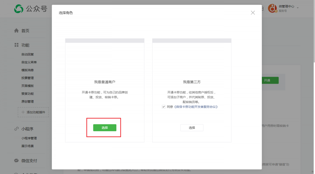 2、在[功能]-[添加功能插件]中找到[卡券功能],點(diǎn)擊進(jìn)入